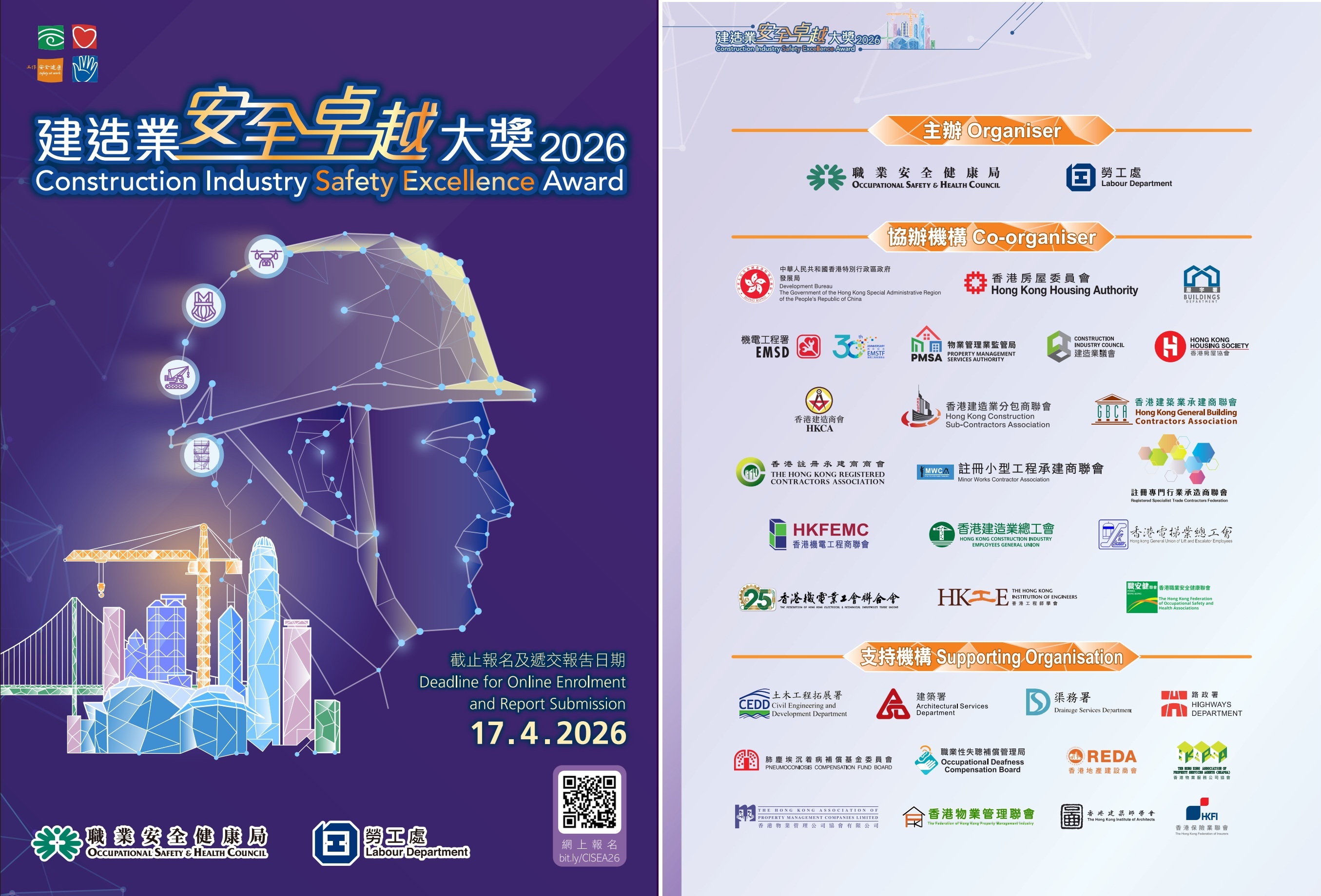 職業性失聰補償管理局是「建造業安全卓越大獎2026」的支持機構。「建造業安全卓越大獎2026」已接受報名,報名及其他詳情,請參閱職安局-大獎專頁及比賽刊物。